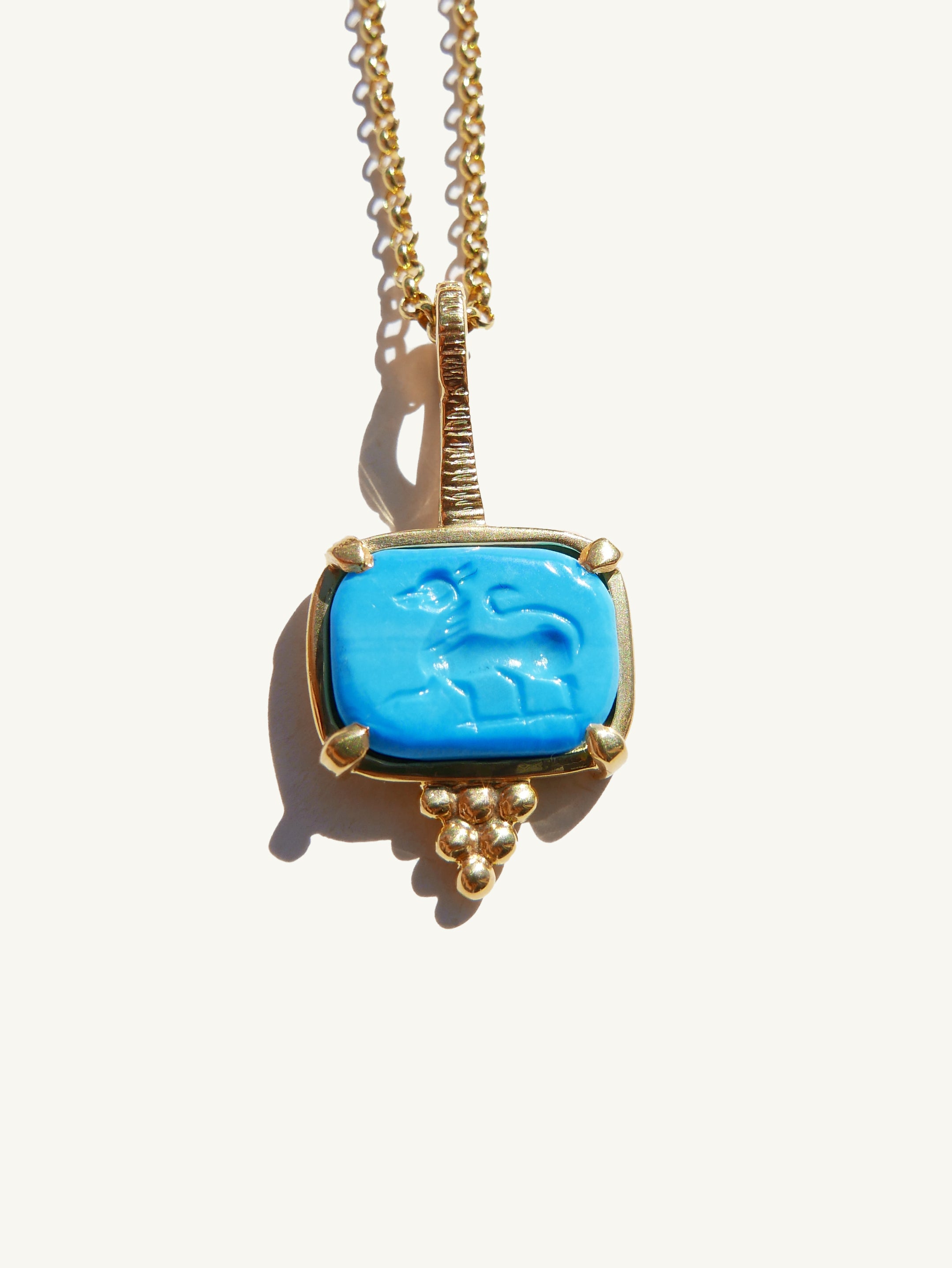 MITOLOGICAL ANIMAL Pendant with Carved on Turquoise